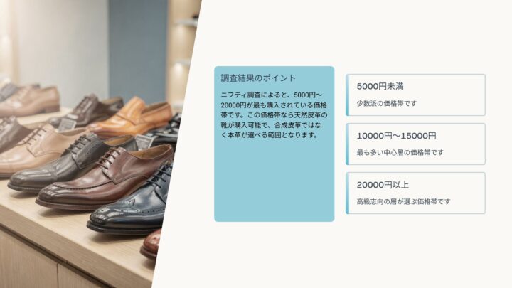 実際にニフティが実施した調査では、サラリーマンが革靴1足にかける金額は5000円から20000円が最も多いという結果が出ています。