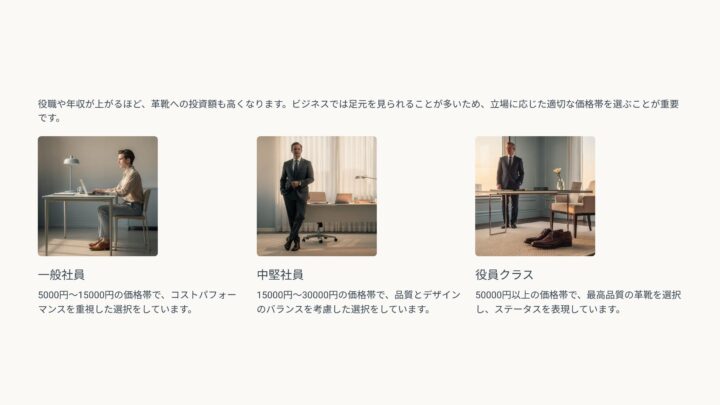 役職や年収が上がると、革靴にかける金額も高くなる傾向があります。